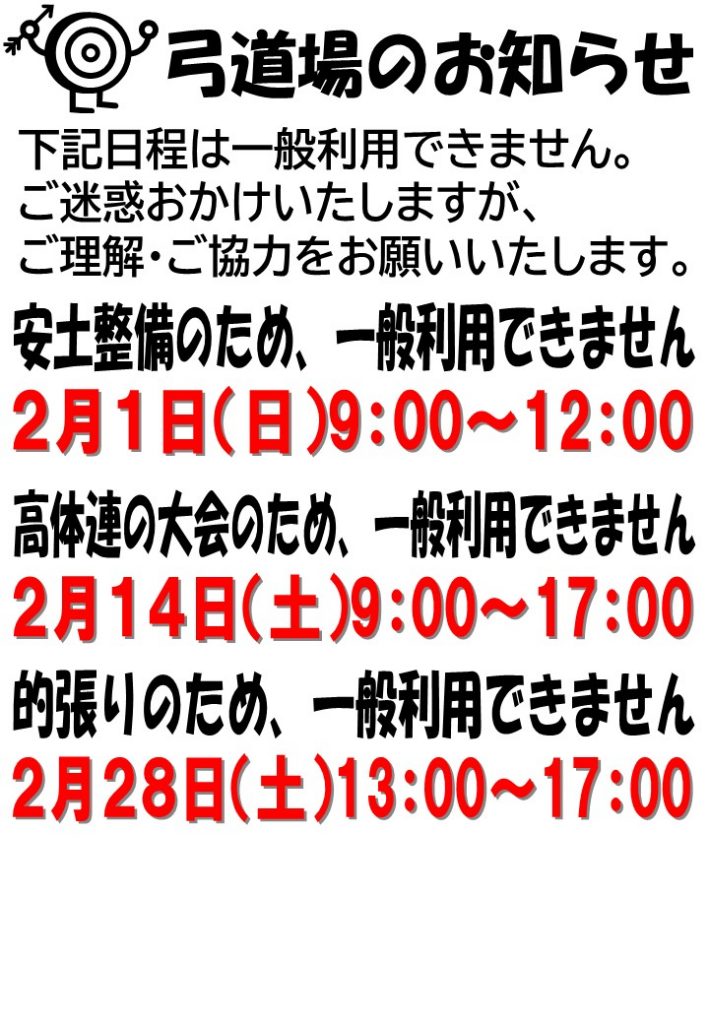 令和8年2月弓道場のお知らせ